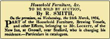 Mr Lockett licensee at New Inn moving and selling furniture and effects