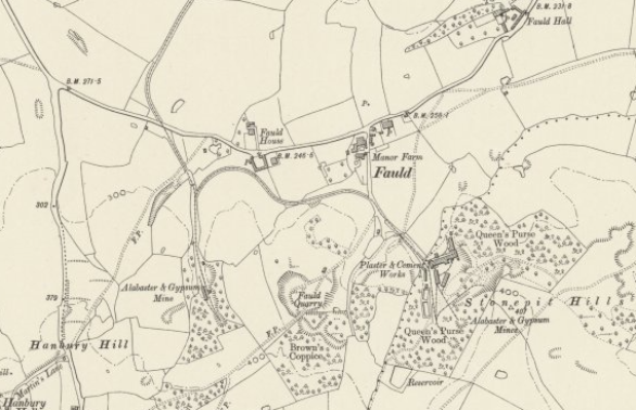 Geological and Technical notes.Introduction Henry Newton started his business in Gnosall in 1855. The earliest newspaper advertisement placed by him found so far is dated 1863. It gives an indication of variety of the building products that he was manufacturing at that time and is shown below:The following account gives a “base level” explanation of how the minerals and rocks that are used as raw materials were mined, transported and then processed in plaster and cement mills to manufacture those products.However, the account begins with a consideration of the local geology around Chellaston, near Derby (where the Newton family originated), and the Fauld area, near Tutbury, in East Staffordshire. These two areas are “famous” for their deposits of alabaster, as well as gypsum and anhydrite, the raw materials needed to make plasters and some types of cement. The manufacture of other types of cements that are derived from limestones such as Portland Cement are also covered.Geological SettingSome 180 - 190 million years or so ago, during the late Triassic period, Staffordshire was located at similar latitudes to the Sahara Desert. The climate was hot and arid, and the landscape was one of low hills, with sedimentary basins, wide flood plains and large shallow onshore ephemeral lakes, termed “Playa Lakes”.The basins were fed by rivers arising in once mountainous areas, to the south in France. The rivers transported clays, muds and silts (occasionally sands) as suspended sediments and deposited them into the basins. These sediments were lithified millions of years ago and became the thick sequences of reddish-brown coloured mudstones and shales found all across the Midlands, including Gnosall, where they are partly exposed in Cowley Cutting. The sequence is known as the Mercia Mudstone Group (MMG).In addition to the suspended sediment loads, rivers also carry minerals in solution, (dissolved out of the rocks over which they are flowing). Where the rivers drained into playa lakes (as opposed to the sea) because of the hot climatic conditions these lakes were susceptible to water loss by evaporation, and the consequent increase in concentration of dissolved minerals. At the saturation point, the minerals start come out of solution as precipitates and then sink to the bottom of the lake. Sometimes the playa lakes will dry up completely, creating “mineral flats” until river flows recover, and the lakes form again. These river and climatic conditions prevailed over millions of years and the process was repeated many times. Not surprisingly mineral deposits such as: Gypsum, Anhydrite and Alabaster formed in this way are collectively termed “Evaporites”. Within Staffordshire the most important deposits of Gypsum, Anhydrite and Alabaster are found around Tutbury and near a hamlet called Fauld in the Parish of Hanbury (there are others near Stowe by Chartley). Extensive deposits were also found in Chellaston, where Henry Newton was born, some 5 miles SE of Derby City Centre. The British Geological Survey now refer to all of the deposits (regardless of actual geographical location) as The Tutbury Gypsum in their “Lexicon of Named Rock Units”. The British Geological Survey Maps: Sheet 140 “Burton Upon Trent” covers Tutbury and Fauld areas and Sheet 141 “Loughborough” covers Chellaston. Both maps, together with vertical sections, cross-sections etc are available to view via the BGS Website’s. Map Portal.Evaporitic Minerals and Rocks GypsumGypsum is a naturally occurring, whitish, non-metallic mineral composed essentially of Calcium Sulphate. It also contains two molecules of water incorporated within its molecular structure (known as the Water of Crystallisation). The chemical formula is: CaSO4. 2H2O. In nature it can found in both crystalline and in massive forms. Gypsum is very soft and is easily scratched. It is designated as the Index Mineral Hardness 2 on Moh’s Scale of Hardness (where Talc = 1 and Diamond = 10). AnhydriteAnhydrite is a naturally occurring mineral very often found associated with gypsum. Like gypsum it is essentially Calcium Sulphate, but, as its name suggests, does not have any water of crystallisation. Its chemical formula is CaSO4. It tends to be greyish in colour but is harder than gypsum, registering 3 to 3.5 on the Moh’s Scale. AlabasterAlabaster is not a mineral per se, it is a rock composed a range of constituent minerals in varying amounts. The minerals include Gypsum, Anhydrite, Calcite (Calcium Carbonate, CaCO3) and traces of other minerals. It has a characteristic mottled and/or colour-banded appearance. It is a soft rock and can be carved, sculpted, turned on lathes and polished. It has been used for centuries to make ornate architectural features and “objets d’art”.Although gypsum, anhydrite and alabaster are classified as different substances, in evaporitic mineral deposits they are often found blended together in complex intermingled irregular bodies rather than individual distinct beds of pure gypsum or alabaster. Tutbury GypsumIn 1906 Thomas Trafford Wynne, an experienced Mining Engineer (Henry Newton’s son in law) presented a paper to the Institution of Mining Engineers titled “Gypsum in the Dove Valley”, where he described the nature of the Tutbury Gypsum deposits. Extracts as follows:The gypsum is found cropping out on the hillside and has proved to be a continuous though irregular deposit, though how far back into the hill has not yet been ascertained... All classes of stone are mined: large alabaster blocks, either pure white or veined or coloured; and from the best white gypsum from which the highest grades of plaster are made, through the various grades down to stone so mixed with marl as to be valueless.Anhydrite, or as it is called locally “hardstone”, is met with in varying quantities…There seems to be no dividing line or clear cleavage between the gypsum and the anhydrite. The hardstone is often inti