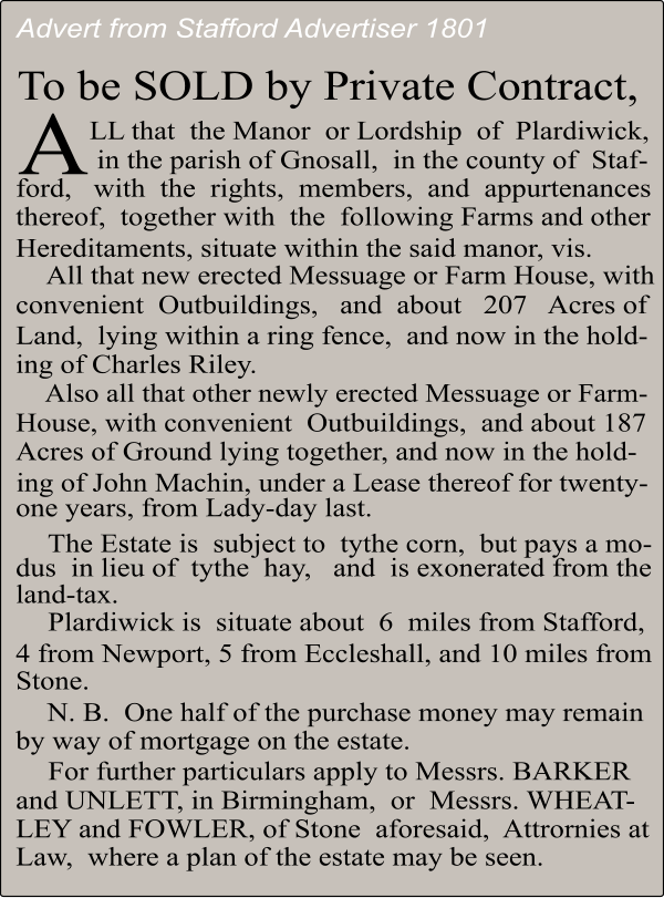 People may not realise that there is still a Lord of the Manor of Plardiwick in the civil parish of Gnosall.