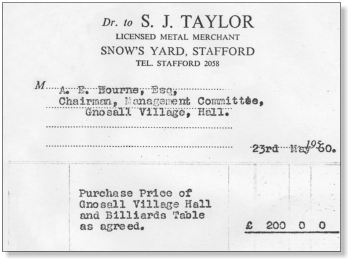 Gnosall prospered especially during Victorian times due mainly to the Birmingham-Liverpool Canal carrying bulk goods and the Stafford-Shrewsbury railway transporting goods and passengers. Both services ran through the heart of Gnosall. Industries such as saw mills, brickworks, milk factory, flour mill, cement works, toy factory and furniture manufacturing as well as supporting trades provided local employment. Village schools ensured education from the age of 5 until school leaving age and Pastoral care was and still is provided by two churches, so the residents bonded into a tight community. Learning, praying, working and socialising together and mostly within the village. Many industries fell by the wayside in the early 1900s but the community spirit prevailed. In May 1921 the Ecclesiastical Commissioners for England donated a site of more than 3,000 square yards at the south side of the junction of Lowfield Lane and the main, Stafford to Newport road to ‘The Trustees’ as the site for a Parish Hall. The area had previously been a gravel pit according to the early maps. George Woodfield, a local smallholder who had lost his son John in the first world war paid £190 for an army hut used by Canadian soldiers at Brocton Camp near to Stafford. (Faint writing on the rear of the building later revealed it to be the “Non-Conformist Hut”) Many local people raised money, prepared the ground, moved and re-built the hut on the donated land. It was called the “Memorial Institute”. Mrs. Woodfield opened the Memorial Institute on Saturday 15th October 1921 just 5 months after the land was donated. The hut comprised one large 66 by 36 foot room complete with stage and piano, and one small room 30 foot square which was used for billiards. A committee room was built, and there was ample provision for games etc. and a library. Facilities were provided for serving refreshments. It was administered by the Gnosall Community Council and the Parish Council. Perhaps we should pause at this point to consider the impact this building made on the village. It’s 1921 - one year before BBC radio started and ‘television’ wasn’t even a word, so communication was by word-of-mouth or from newspapers. No entertainment or information available over the air-waves. The only venues in Gnosall where a large number of people could meet were restricted to the Churches, School rooms and various village pubs. None of which was suitable for all occasions. A visit to one of the nearby towns by train would give access to theatres and dances, but there was nothing locally. So now the villagers had this wonderful facility with large hall complete with stage, billiards room and a meeting room. Within 5 weeks of opening according to local newspaper cuttings, there were billiard competitions, a newly formed Badminton Club with 30 members and Whist drives to name just a few activities. There was even a tea party for all the village children aged between 4 and 14. Over time the building was used for many activities including, old time and modern dances and a mobile cinema visited each Tuesday evening. The “Gnosall and District Nursing Association” used the Institute for clinics for 20 years prior to the National Health Service. In the early years before motor cars were popular and a car park wasn’t needed, a bowling green was laid at one side of the Institute and tennis courts at the other side. The entrance to the building was from the road side of the building. The ’Gnosall Memorial Institute Dramatic Club’ staged many plays from 1928 onwards promoting the local village talent and of course all the actresses and actors would have been known to the audiences. Over the years the building started to show its age and by 1949 plans were being prepared for a new building and money was being raised – an indication of how much the residents valued the Hall and the commitment to honour those who fell during WW1. In March 1950 a new Trust was formed where Gnosall Parish Council handed its part of the shared responsibility for the management of the Memorial Institute to the Management Committee. The new Trust Document lists 31 village organisations who can delegate members to act on the committee up to a maximum of 40 members. The Ecclesiastical Commissioners conveyance document for the land from 1921 declared “that neither the said land nor any buildings erected thereon shall be used for the sale of any wine, beer, or spirits for any purposes except those authorised”. (Whilst carrying out research, one resident confirmed they had to obtain written permission in order to toast the bride and groom with a glass of sherry at her wedding reception). In 1951 a small strip of additional land was given by Mr Tomkinson from the Manor Farm opposite the hall allowing an entrance hall and cloakrooms to be built. This was completed in 1952. It also removed the alcohol-free condition of the original 1921 Conveyance. The wooden building continued to fall into a state of disrepair and from 1954 onwards the cost of maintenance exceeded the income. On 26 February 1954 the administration was transferred to the Charity Commission in London and the hall was registered as a charity known as the “Gnosall Memorial Institute”. A new constitution was drawn up naming 14 village organisations able to have representatives on the Management Committee as well as elected members. The ‘Community Council’ having completed the hand over to the Charity Commission then disbanded. By that time the Community Council had plans approved and obtained grant aid for a new hall. Planning permission was applied for and given in 1960 and grants were confirmed. In March 1960 the original hall was advertised for sale in 3 newspapers. It was sold in May for £200.00 and included a Billiard Table. Work started on the new hall in August. The new Hall cost £5200. There were two grants of 1 / 3 from Ministry of Education and ¼ from Staffordshire Educatio