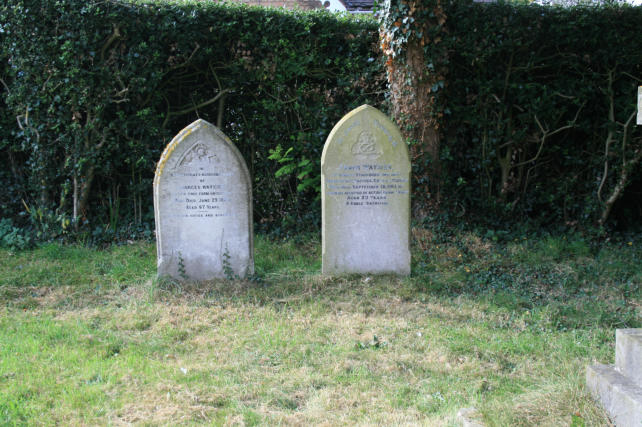 Frank Watkiss was buried next to his grandmother Frances Watkiss west of the church in